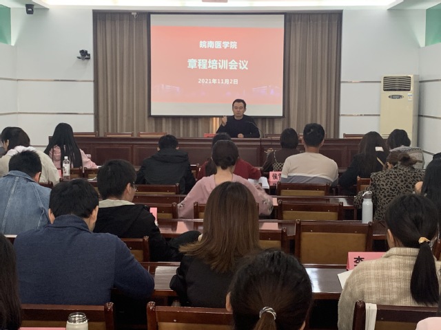 为完善中国特色现代大学制度,促进学校依法治校、规范管理、科学发展,11月2日下午,办公室副主任李鸿显在图书信息大楼视频会议室为2021年新进教职工宣讲《皖南医学院章程》。