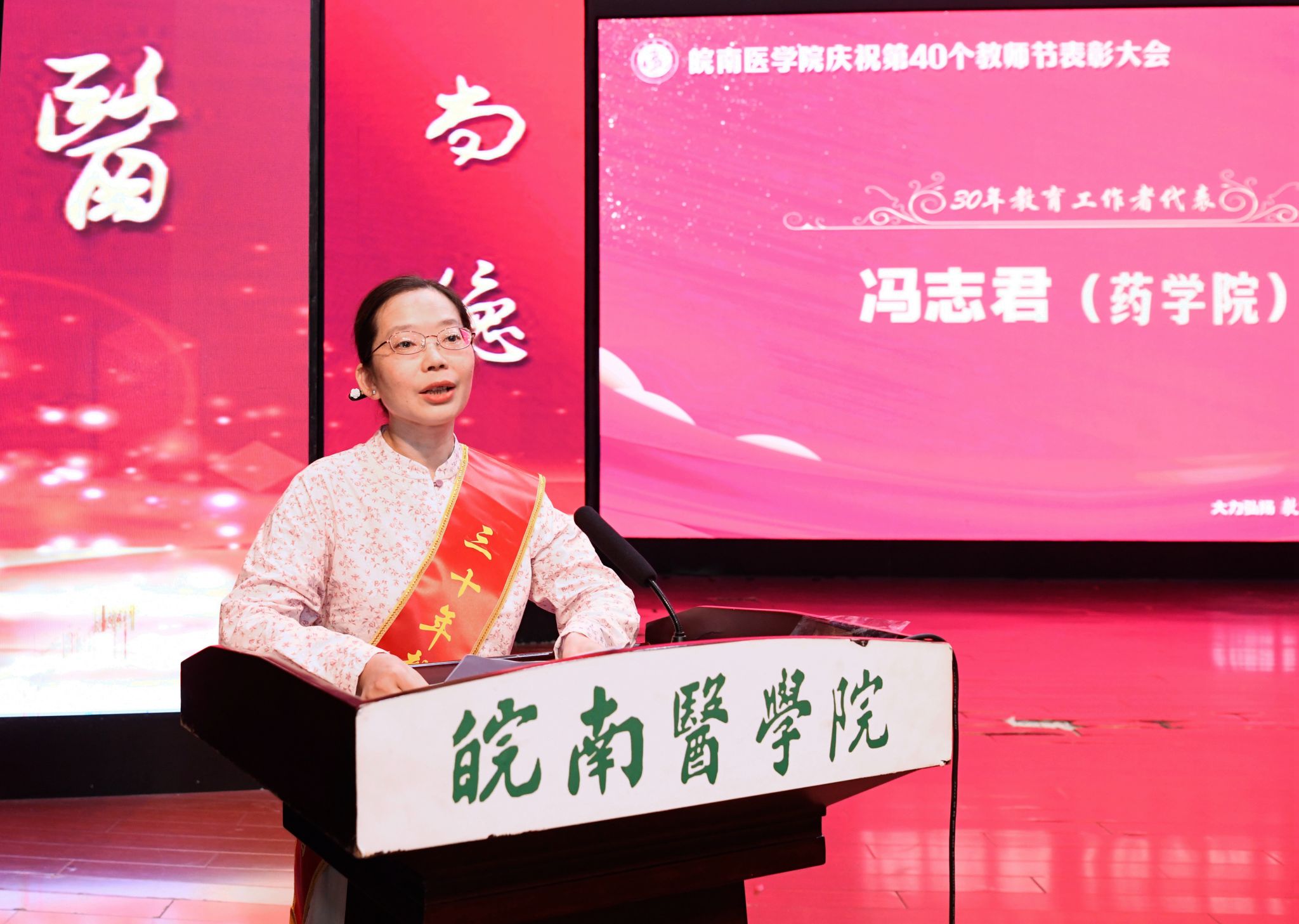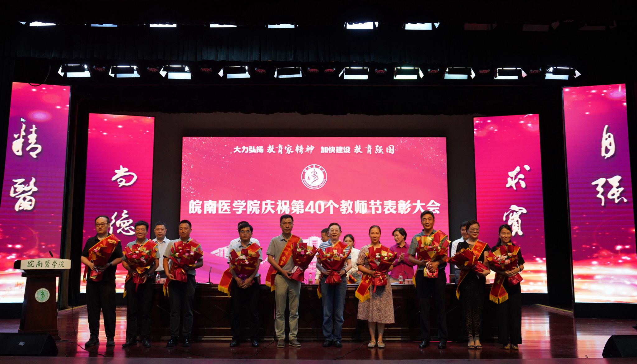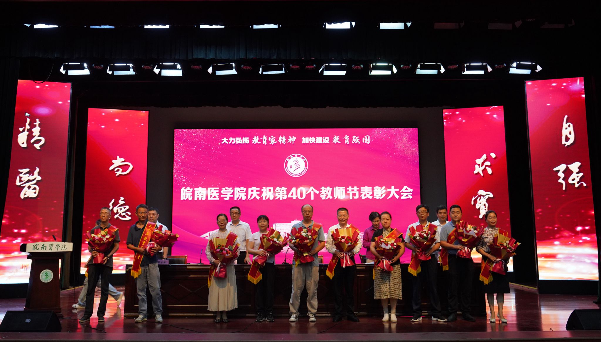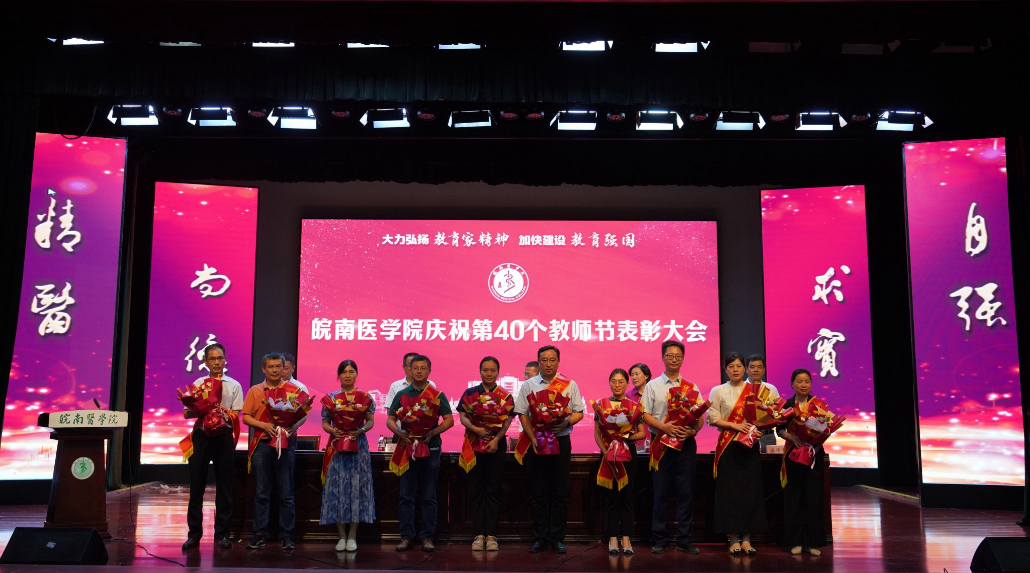 会上,副院长文育锋宣读《中共皖南医学院委员会关于表彰2024年先进集体、优秀教师、优秀教育工作者的决定》,副院长韩永升宣读近一年来获得省级以上荣誉称号、人才称号、重要竞赛获奖教师以及指导学生竞赛获奖教师名单,纪委书记、监察专员王保中宣读“30年教育工作者”名单。