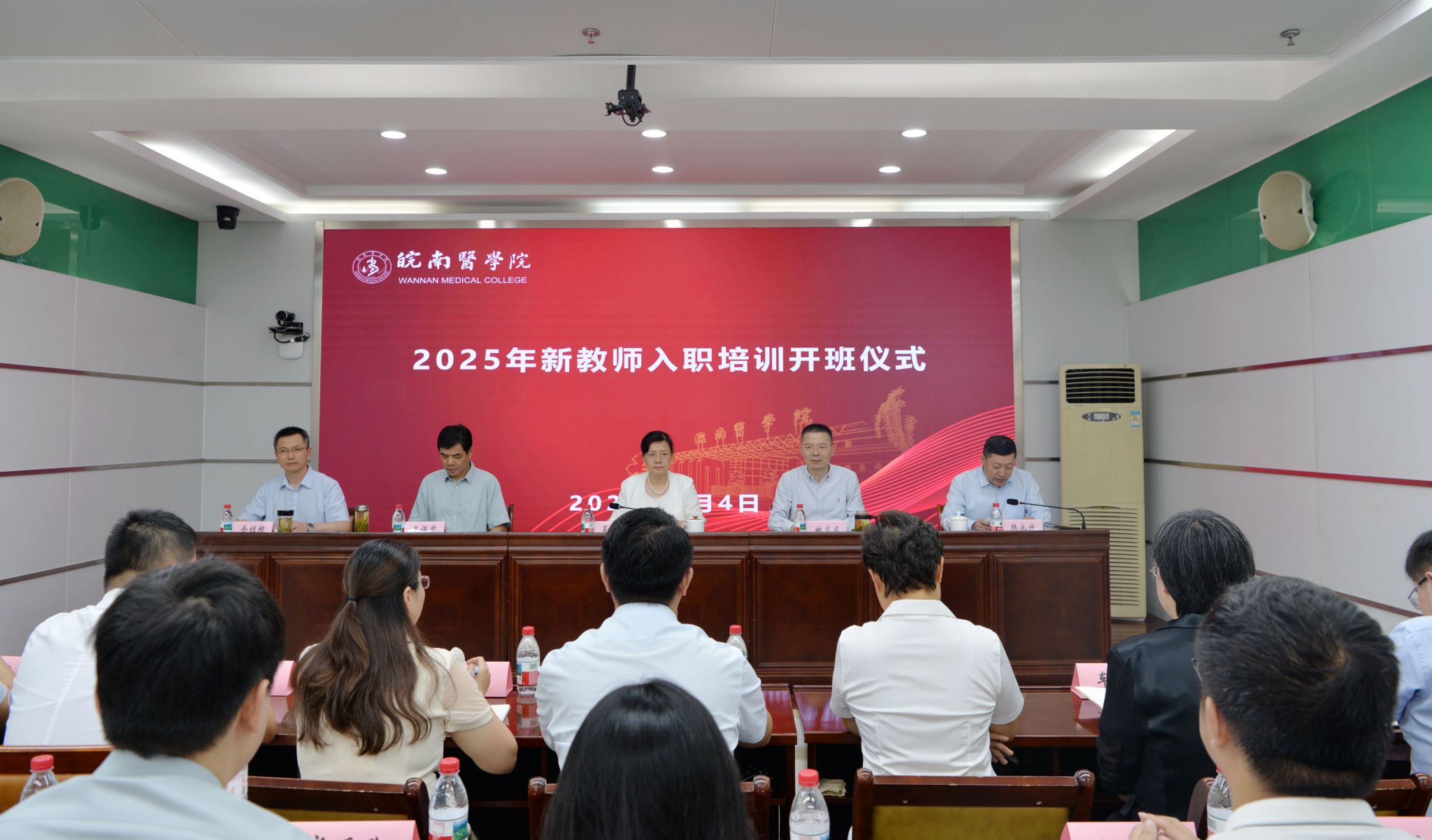 9月4日上午,学校举行2025年新教师入职培训开班仪式。校领导夏劲松、姚应水、王保中、韩永升、余结根出席仪式,并分别为新教师颁授、佩戴校徽。党委书记夏劲松为新教师讲授“第一课”,勉励全体新教师要牢记为党育人、为国育才的初心使命,争做”四有”好老师,努力成长为具有教育家精神特质的教育家型教师,为建设高水平医科大学贡献智慧和力量。
