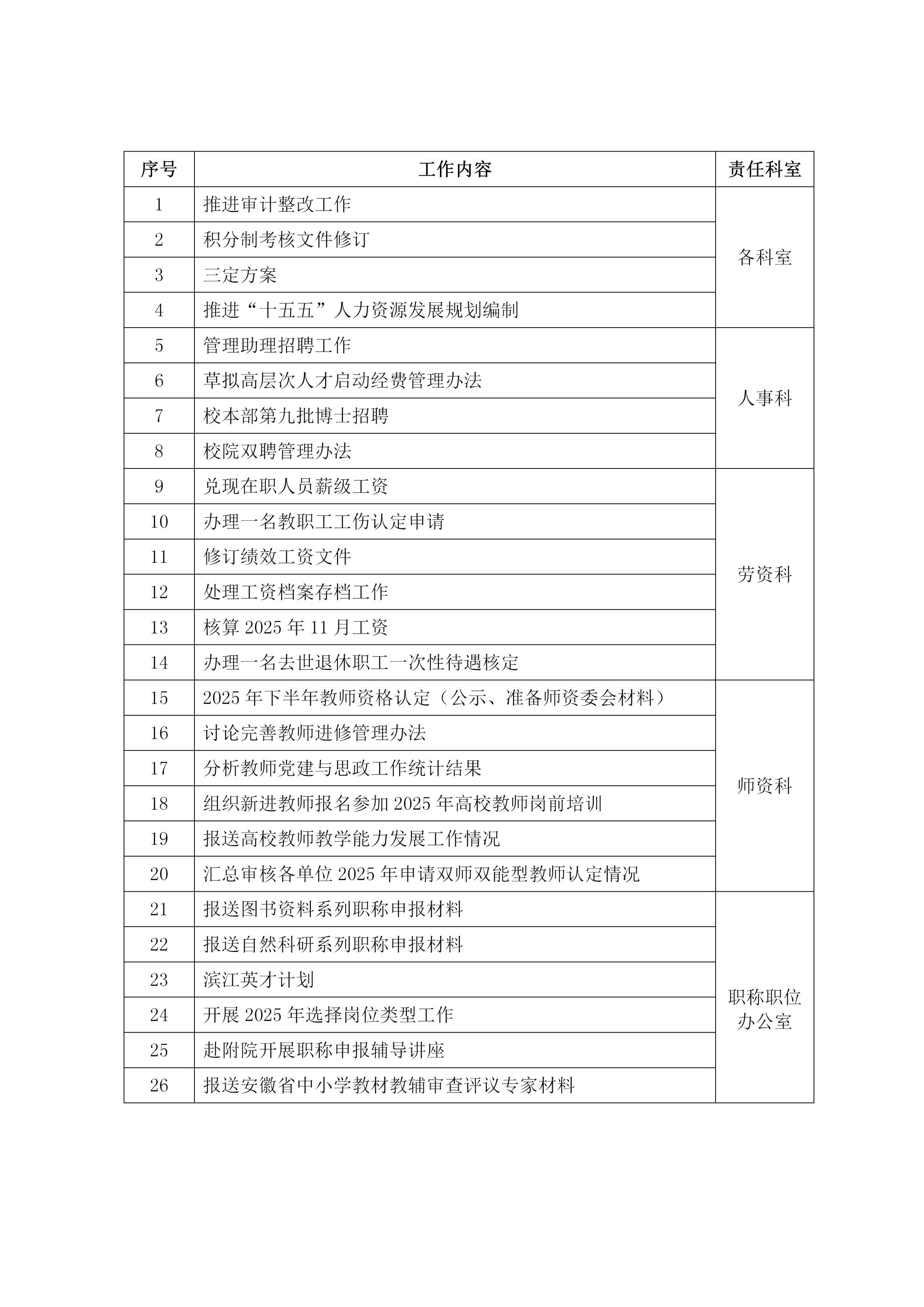 2025-2026-1学期人事处第8周工作安排(10月27日-10月31日)