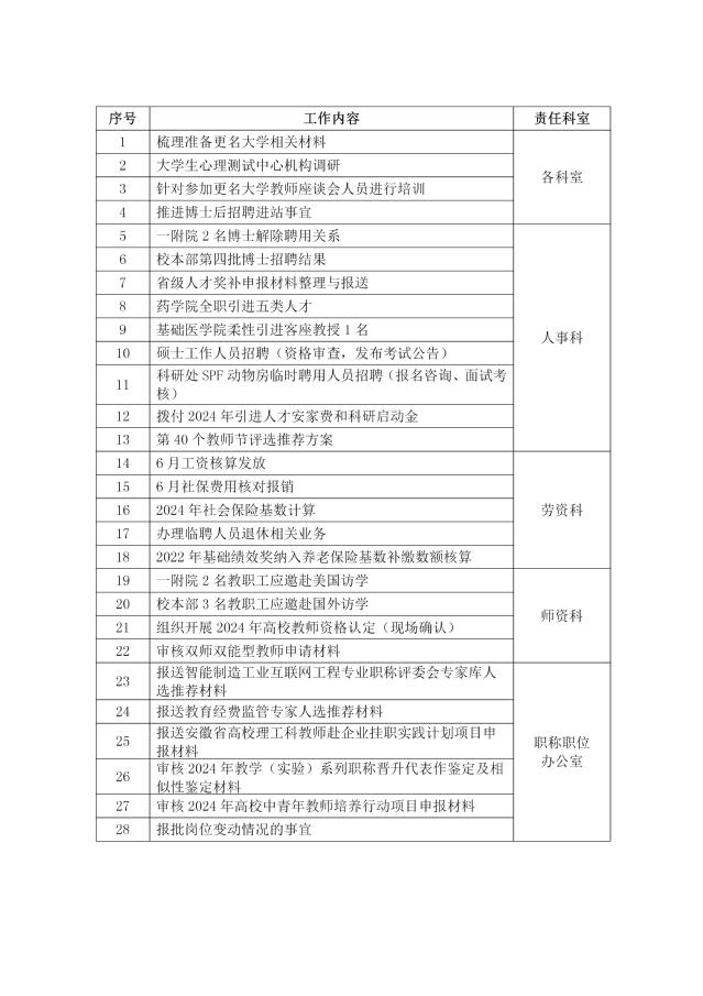 2023-2024-2学期人事处第15周工作安排(6月3日-6月7日)
