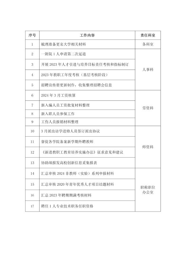 2023-2024-2学期人事处第1周工作安排(2月26日-3月1日)
