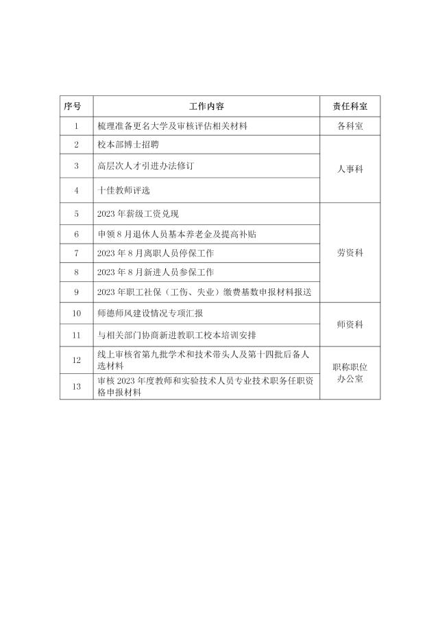 2022-2023-2学期人事处第27周工作安排(8月21日-8月25日)